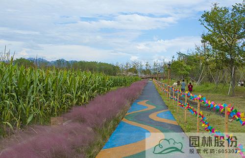 由杭州市園林綠化股份有限公司施工的白溪江共享田園項(xiàng)目,位于東陽(yáng)市六石街道吳良村至下灣村周邊,是東陽(yáng)市首批共享田園項(xiàng)目之一。項(xiàng)目以現(xiàn)代創(chuàng)意農(nóng)業(yè)為基礎(chǔ)、影視產(chǎn)業(yè)為支撐、文化創(chuàng)意為特色,打造集現(xiàn)代化農(nóng)業(yè)生產(chǎn)、研學(xué)科教、農(nóng)事體驗(yàn)、田園影視等于一體的田園公園。推窗見(jiàn)田野,出門(mén)是公園,田園成為家園的一部分,與美麗鄉(xiāng)村建設(shè)連成一體,繪就鄉(xiāng)村振興的恢宏畫(huà)卷。