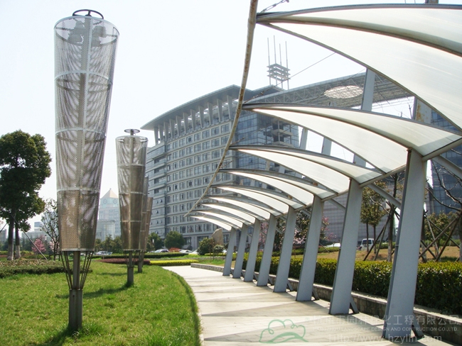 海寧市海洲廣場(chǎng)北區(qū)Ⅱ標(biāo)段(綠化工程)位于海寧市行政中心內(nèi),區(qū)域范圍由海洲路、高家橋河、丁橋港一路兩河圍成,綠化用地123000平方米。該工程為綜合性園林工程,分為17個(gè)分部,包括園路、林蔭停車場(chǎng)、人文廣場(chǎng)、林蔭廣場(chǎng)、親水平臺(tái)、浮雕、噴泉、景觀亭、景觀廊、休息廊、網(wǎng)球場(chǎng)、小方塊道路、假山、園形花廊、鋪裝停車場(chǎng)、綠化工程、給排水工程及電氣安裝等。