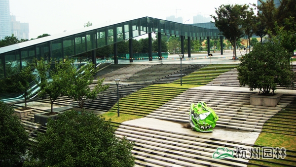 該工程東臨新業(yè)路,西至解放東路,北倚杭州市市民中心,工程占地 5.1公頃,內(nèi)容包括地面花崗巖及木地板鋪裝,臺階花崗巖鋪裝,臺階水池、兩翼水池鋪裝,種植土更換,喬木種植,草皮鋪種等。工程將現(xiàn)代科技和園林藝術完美交融,是杭州走向錢塘江時代的創(chuàng)新力作。