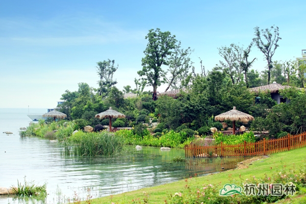 該工程位于江蘇吳江松陵鎮(zhèn)濱湖路三船河大橋附近,內(nèi)容包括綠化種植、硬質(zhì)鋪裝、園路施工、景觀小品工程、樁基工程、景觀照明系統(tǒng)等。在植物配置上,將中國園林的自然式手法與英國園林的自然式風(fēng)格相結(jié)合,營造出亦古亦今、中西混搭,整體恢宏大氣、局部婉約精致的高端酒店景觀。該工程榮獲“2014年度中國優(yōu)秀園林綠化工程大金獎(jiǎng)”。