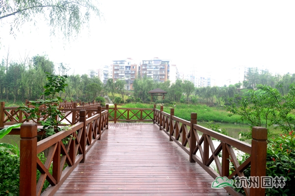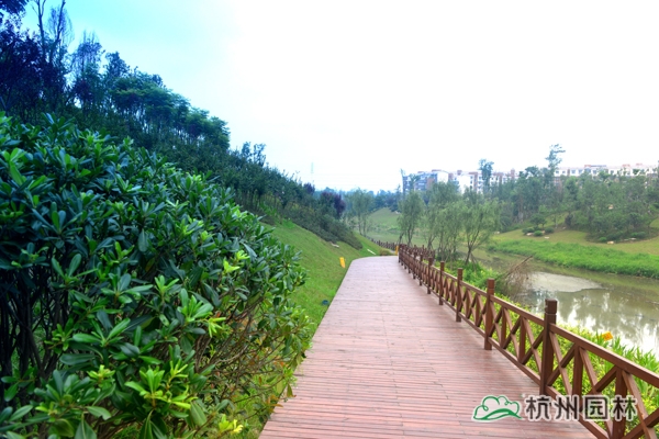 瀘州市玉帶河濕地公園(一期)工程位于四川省瀘州市龍馬潭區(qū),施工內(nèi)容包括完善公園一期120余畝范圍內(nèi)園林道路、植物種植、拱橋、曲橋、水上園路、景觀亭等基礎(chǔ)設(shè)施建設(shè),玉帶河片區(qū)截污干管建設(shè)等。工程于2013年8月開工,2014年5月竣工,歷時9個月。該工程榮獲“2014年度浙江省優(yōu)秀園林綠化工程銀獎”。