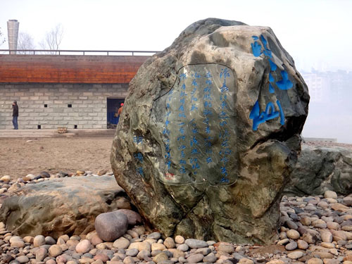 在臨近東門口廣場(chǎng)的地方,豎立著一塊高4米的整石無(wú)字碑,粗糙的碑身上下沒(méi)有一個(gè)文字,只有鐫刻的一行阿拉伯?dāng)?shù)字“2012.7.23”,以及記錄洪水水位高度的標(biāo)刻?!氨淼捻敳糠幸恢晃┟钗┬さ南?,取名為‘犀牛鎮(zhèn)河妖’,現(xiàn)在犀牛還沒(méi)做上去。”李壽仁說(shuō),“這塊無(wú)字石碑是讓瀘州人民永遠(yuǎn)銘記著2012年7月23日,洪災(zāi)肆虐酒城,洪水水位達(dá)到瀘州歷史最高水位的日子。”一塊無(wú)字碑,勝過(guò)千言萬(wàn)語(yǔ)的表述,卻讓人們銘記一段歷史。作為無(wú)字碑的原創(chuàng)者,李壽仁希望借此表達(dá)酒城人民希望今后洪水不再肆虐、家人永遠(yuǎn)平安的祈盼。再仔細(xì)觀察才發(fā)現(xiàn),這塊石碑的四個(gè)角、四個(gè)面的處理方式和紋路都各不相同。看似無(wú)字,實(shí)則意蘊(yùn)深遠(yuǎn),如此創(chuàng)意,讓人暗暗稱妙。