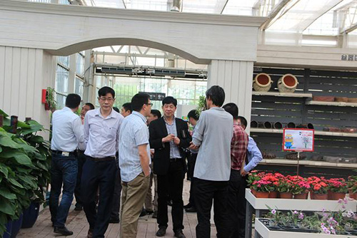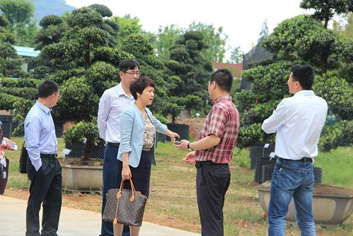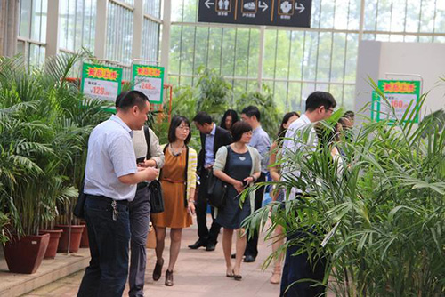 圖為企業(yè)家在考察參觀杭州園林畫境·青山湖花園中心