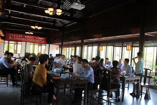 在畫境·青山湖花園一間中式木樓中,聚集著近30位江干區(qū)政府、發(fā)改局和各行各業(yè)的優(yōu)秀企業(yè)家。