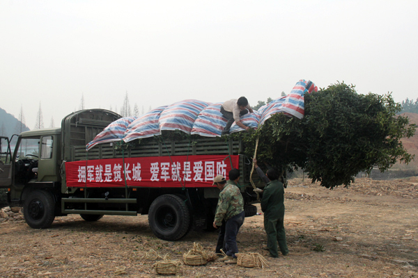 為給官兵營建綠色的生活環(huán)境,杭州市政府從杭州市園林綠化工程有限公司位于臨安泉口的苗木基地選購了一批桂花樹送給駐舟山部隊(duì)。據(jù)悉,此次選購的桂花為蓬徑1.8米至3.5米的大苗,品種有四季桂、硬葉丹桂、波葉金桂等。同時(shí),該公司還派出了專業(yè)技術(shù)人員前往舟山指導(dǎo)種植工作。