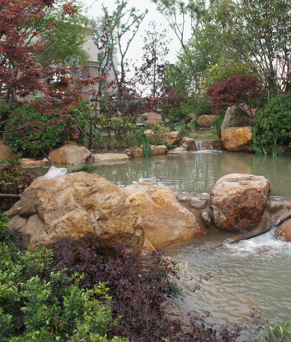 全部水景完工后,這處流水淙淙、音樂輕揚(yáng),水中植物點(diǎn)點(diǎn)翠翠,周邊景石自然分散的水系景觀,成為整個工程的點(diǎn)睛之筆,激發(fā)觀者探詢自然、渴望親近的向往與喜悅。