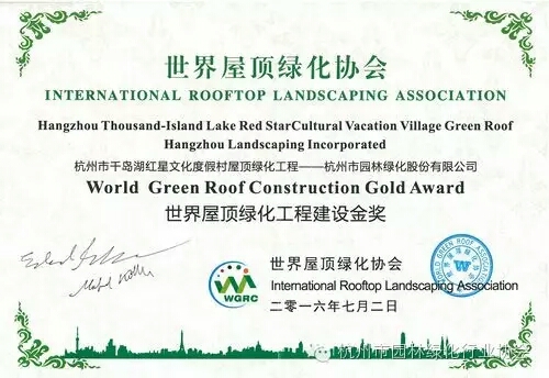 近日,在云南昆明召開的2016世界生態(tài)城市與屋頂綠化大會上,協(xié)會會員企業(yè)——杭州市園林綠化股份有限公司承建的杭州市千島湖紅星文化度假村屋頂綠化工程榮獲“世界屋頂綠化工程建設(shè)金獎”。