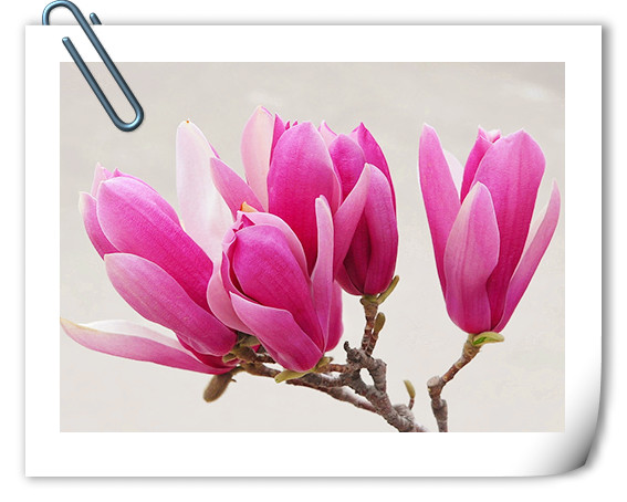 不同顏色的玉蘭中,開得最早的,當(dāng)數(shù)白玉蘭,那純正的白色花朵,纖塵不染,清雅秀麗中有著瓷器的溫潤質(zhì)感,仿佛一件件潔白的工藝品,很想將它捧在手心,慢慢品味它的精致與美麗。紫色的玉蘭花,則有著淡淡的華貴氣質(zhì),那含苞欲放的花朵,酷似一枝枝飽蘸紫色墨水的毛筆,揮灑自如間,描繪出獨(dú)屬于春天的明艷風(fēng)情。黃色的玉蘭花,呈現(xiàn)出淡淡的鵝黃色,柔柔的,嫩嫩的,帶著清新寧靜的氣息,有著超凡脫俗的美。不同顏色的玉蘭花有著不同的美麗,但每一種都那么迷人,充滿靈動的氣息。