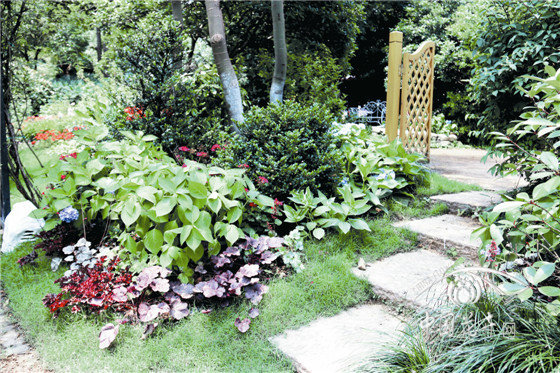 “芳滿庭”位于杭州臨安畫境?青山湖花園中心室外展示區(qū)內(nèi),桂花、櫸樹、狹葉十大功勞、冬青等植物長勢良好,形成了全光照環(huán)境、林緣環(huán)境、郁閉環(huán)境等多種光照空間。在現(xiàn)有庭院布局基礎(chǔ)上,結(jié)合外圍的木香藤架,營造色彩艷麗的花境景觀;內(nèi)部以藍(lán)紫色為主色調(diào),結(jié)合原有郁閉環(huán)境,營造出人們熱愛生活、向往美好的鄉(xiāng)村私密花園美景。該花境作品榮獲“首屆中國花境競賽”金獎。