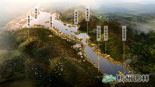 本次提升設(shè)計范圍包括整個湘湖水域、環(huán)湖綠地以及東西岸山脊間的山體。