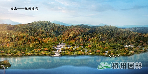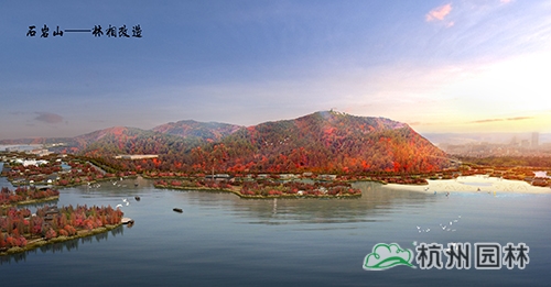 越王城山、老虎洞山、石巖山和柴嶺山為湘湖兩岸群山的四大主峰,依托層巒疊嶂之山勢,進(jìn)行山林林相改造,營造錦繡湘湖之湖山景觀。