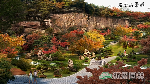 結(jié)合石巖山上有先照寺、一覽亭遺址,補充秋色葉樹種,突出石巖望秋的意境,結(jié)合鵝鼻峰八仙采藥的傳說布置牡丹草藥園,展現(xiàn)湘湖養(yǎng)生文化。