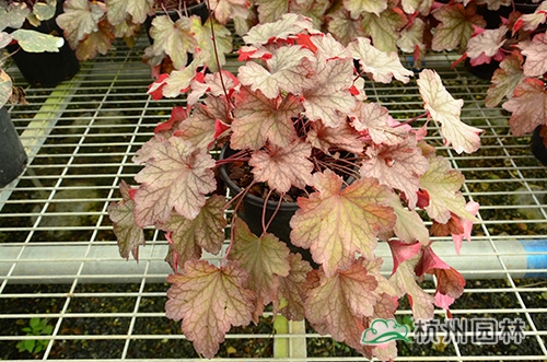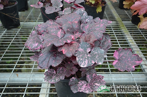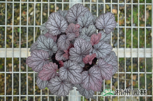 礬根Heuchera micrantha,虎耳草科礬根屬,多年生耐寒草本花卉,原產于美國中部,是少有的彩葉陰生地被植物,被廣泛應用于美國園林景觀中。近年來,在國內,作為新優(yōu)地被植物,礬根因其美麗的葉色和獨特的葉形,良好的觀賞性和景觀效果,成為熱門園林植物之一,有著廣闊的應用前景。
