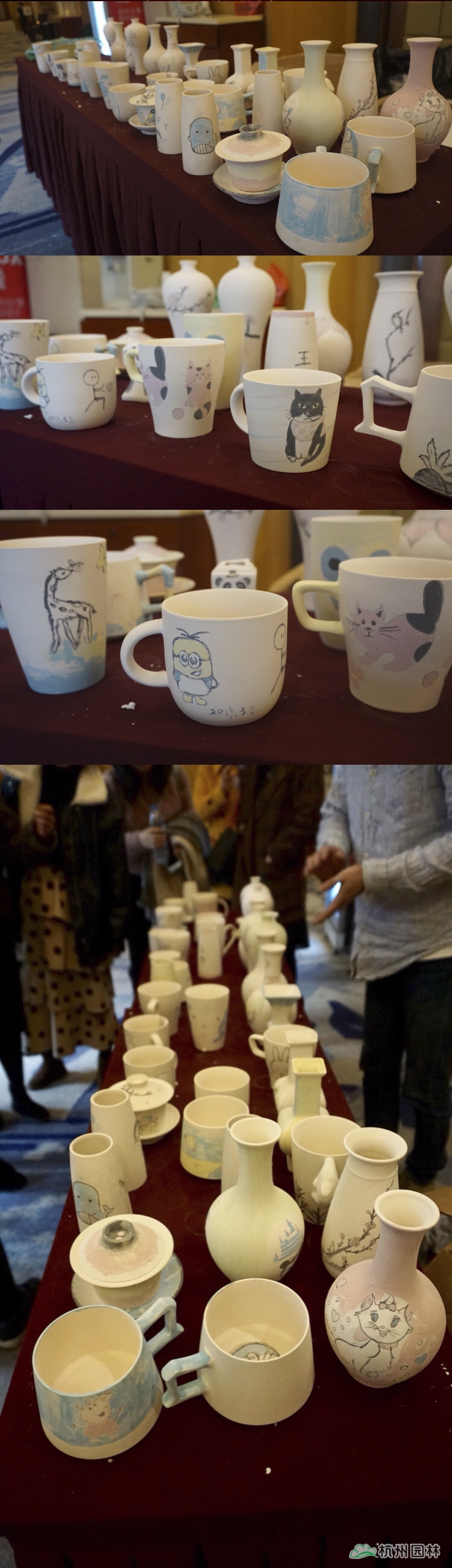 說起陶藝,大家想到的肯定是雙手扶著轉(zhuǎn)盤上的陶泥,捏出形態(tài)各異作品的場(chǎng)景,但今天我們玩點(diǎn)不一樣的。素胚固然清爽,但少了色彩的點(diǎn)綴,總會(huì)覺得好像黑白電影略顯枯燥。是的,這次我們將畫紙搬到了這些瓶瓶罐罐之上。認(rèn)真的女人真的很美,一幅幅生動(dòng)的畫作在短短的一個(gè)多小時(shí)的時(shí)間里展現(xiàn)在了大家的眼前。有山水,有動(dòng)物,有卡通畫,有說要送給家中寶寶的,也有說這代表了我們一家三口的。拿起畫筆的小仙女們,不再是那些個(gè)日常辦公室里的形象了,她們?cè)诮裉?,把自己的可愛、風(fēng)趣、溫婉、隨性等等面貌展現(xiàn)得淋漓盡致。