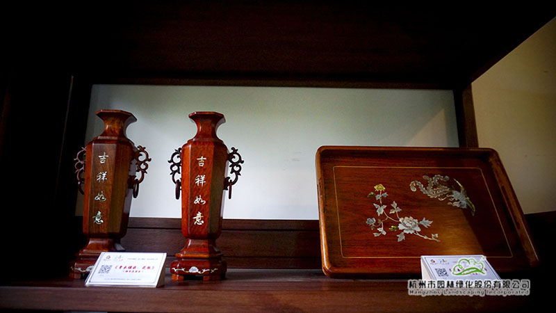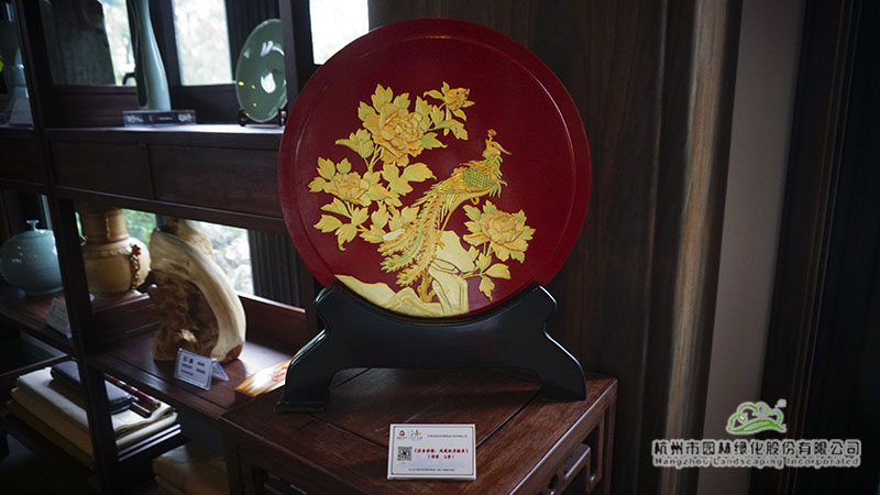 在浙江園的富春山居內(nèi),泥金彩漆、骨木鑲嵌、金銀彩繡等非遺展品也一并展出。泥金彩漆是寧波傳統(tǒng)的“三金”工藝之一,現(xiàn)主要分布于寧波市及其周邊地區(qū)。而骨木鑲嵌則是在木器表面嵌入動物骨骼進(jìn)行裝飾,也是寧波的一門特色手工藝。金銀彩繡則是在真絲面料上用各色彩線繡制、金線和銀線盤繡而成的漢族民間手工藝品之一。這些非遺展品展現(xiàn)了寧波深厚的文化底蘊與人文精神。