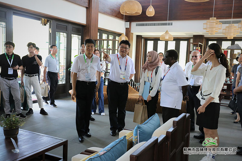 移步大露臺,嘉賓們憑欄眺望,小橋流水,花木蔥郁,“花園浙江”景致如詩如畫。胡俠局長詳細介紹了“浙江園”的設計主題、結構布局和意境表達,嘉賓們頻頻點頭贊許,對浙江園的建設給予了高度評價,認為浙江園較好地展現(xiàn)了美麗浙江景象和生態(tài)文明建設成果。