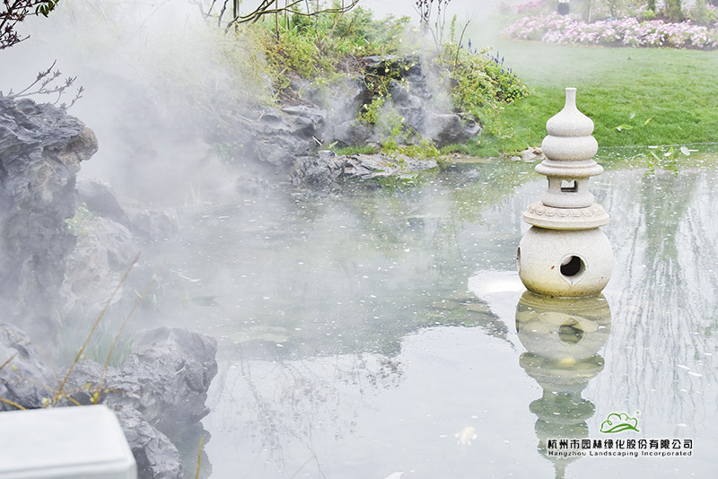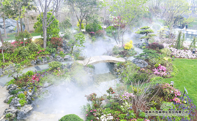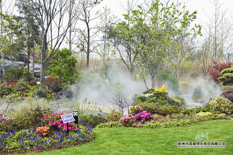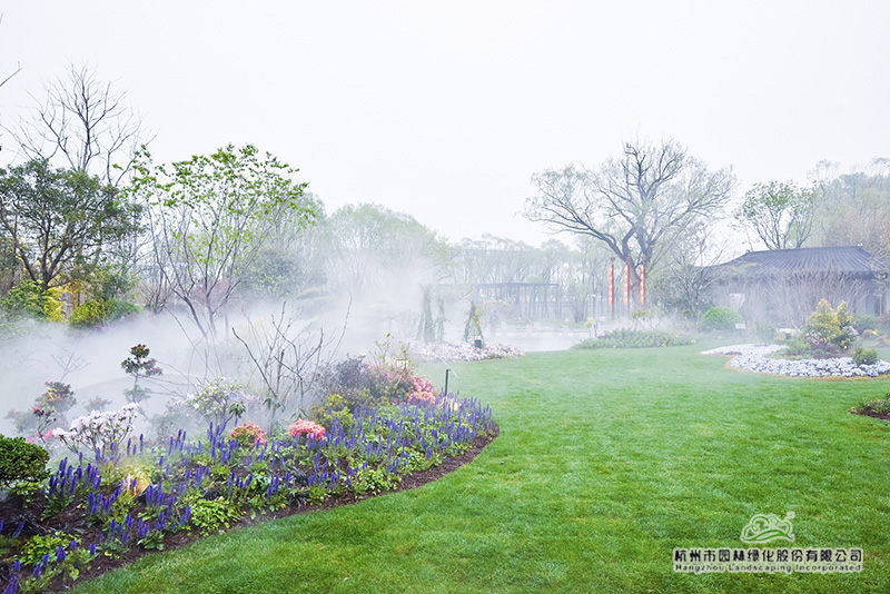 “延慶空氣干燥,而浙江園內(nèi)的植物,基本來自氣候溫潤的南方,因此,如何有效保水和增加空氣濕度,以此來提高植物的成活率和保證后期生長,是我們施工時必須要考慮的問題。”吳小成說,“所以,園內(nèi)我們一共做了四套系統(tǒng),大樹根部的滴灌系統(tǒng)和樹上的噴灑系統(tǒng),大草坪的澆灌系統(tǒng),以及針對全園的霧森系統(tǒng)?!?/div>