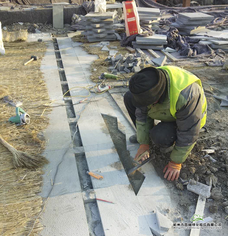 “白天溫度在零度以上時,我們趁著太陽出來、溫度比較高的時候施工;等太陽快下山時,溫度下降很快,這時,我們就停止施工,用毛氈、草墊等將做好的鋪裝蓋起來,再搭上保濕棚保溫。因為如果保暖措施做不到位,白天做好的鋪裝,晚上就會凍壞,導致白天的工作功虧一簣。一些種好的精品樹木,如造型黑松,我們就用很厚的棉被包裹起來,以防凍傷?!被貞浧甬敵醯氖┕み^程,吳小成依然覺得這是施工中一段時常難熬的時期,“零下15℃的時候,我們還在施工,此時水已經(jīng)全部結(jié)冰,但施工又離不開水,怎么辦呢?我們買了一個加熱器,把冰放到桶里,再把桶加溫化水,以此來滿足施工中的用水需求?!?/div>