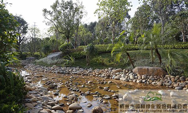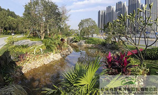 “項目將海綿城市理念融入公園建設,園路鋪裝采用透水混凝土,下雨時雨水可快速滲透,路面不積水;旱溪景觀則在下雨時蓄水,雨水可用于植物的日常澆灌,干旱時,鋪滿鵝卵石的水底又與周邊豐富的植物營造出另一種園林意境?!彪S著葉偉華的介紹,項目建設中許多隱藏的細節(jié)不斷展現(xiàn),生態(tài)造園的理念進一步深入人心。