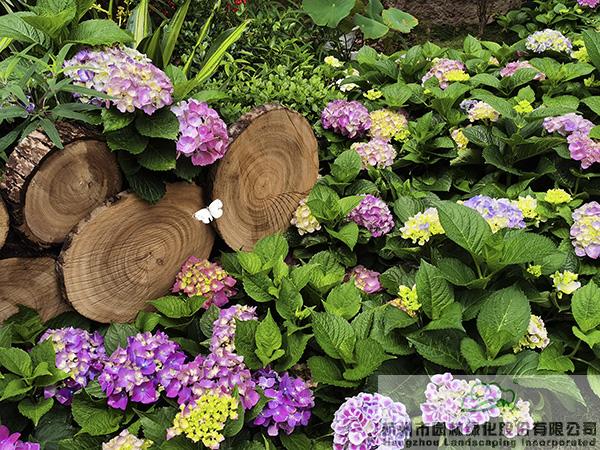 在城隍閣二樓平臺,杭園股份贊助的50余個品種、近400余盆的繡球花也將驚艷亮相,通過豐富的造景方式,充分展現(xiàn)繡球花的魅力。不管是種植在色彩明艷的花箱中,還是與枯木、竹籬笆、瓦片等的搭配,繡球都展現(xiàn)出絕美的風姿,吸引著人們探尋的目光,忍不住拿起相機或手機,留下一個個精彩瞬間。其中,花大色艷、色彩可調(diào)的大花繡球‘搖擺樂’、‘藍寶石’,矮小可愛,青澀潔白的圓錐繡球‘活力青檸’,花如寶塔、葉形如掌的重瓣櫟葉繡球‘雪花’等,是杭園股份今年主推的品種,表現(xiàn)都非常搶眼。