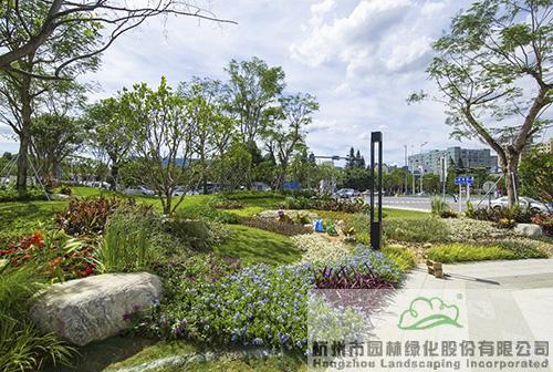 鹿珠廣場花團錦簇,遍植鳳凰木、火焰木,火紅、紫紅、藍色的花棲息在翠綠的草坪上,燦爛又熱烈,營造出色彩繽紛的感官體驗。藍天下,白云邊,走在街頭,到處都是花色如火、熱情奔放的鳳凰木棉,驚艷了來往路人的眼眸。不經(jīng)意抬頭,就能邂逅最美的那一幕。