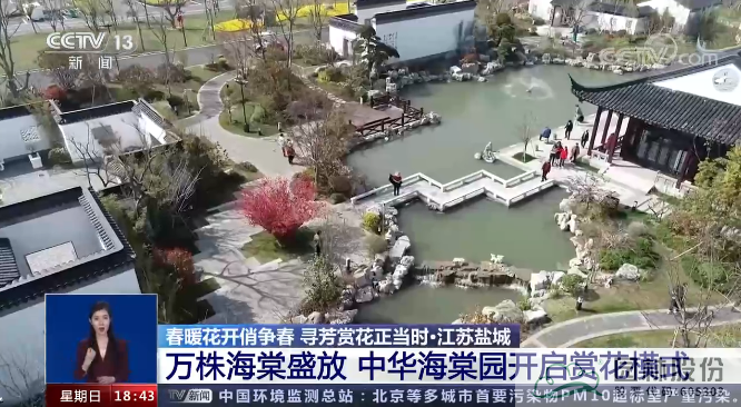 “春暖花開俏爭(zhēng)春,尋芳賞花正當(dāng)時(shí)?!?月28日,央視CCTV13新聞?lì)l道《共同關(guān)注》及《東方時(shí)空》兩個(gè)欄目,先后在熱播時(shí)段,報(bào)道江蘇鹽城中華海棠園內(nèi)海棠花盛開的美景,為當(dāng)?shù)靥ご郝糜巍板\上添花”!