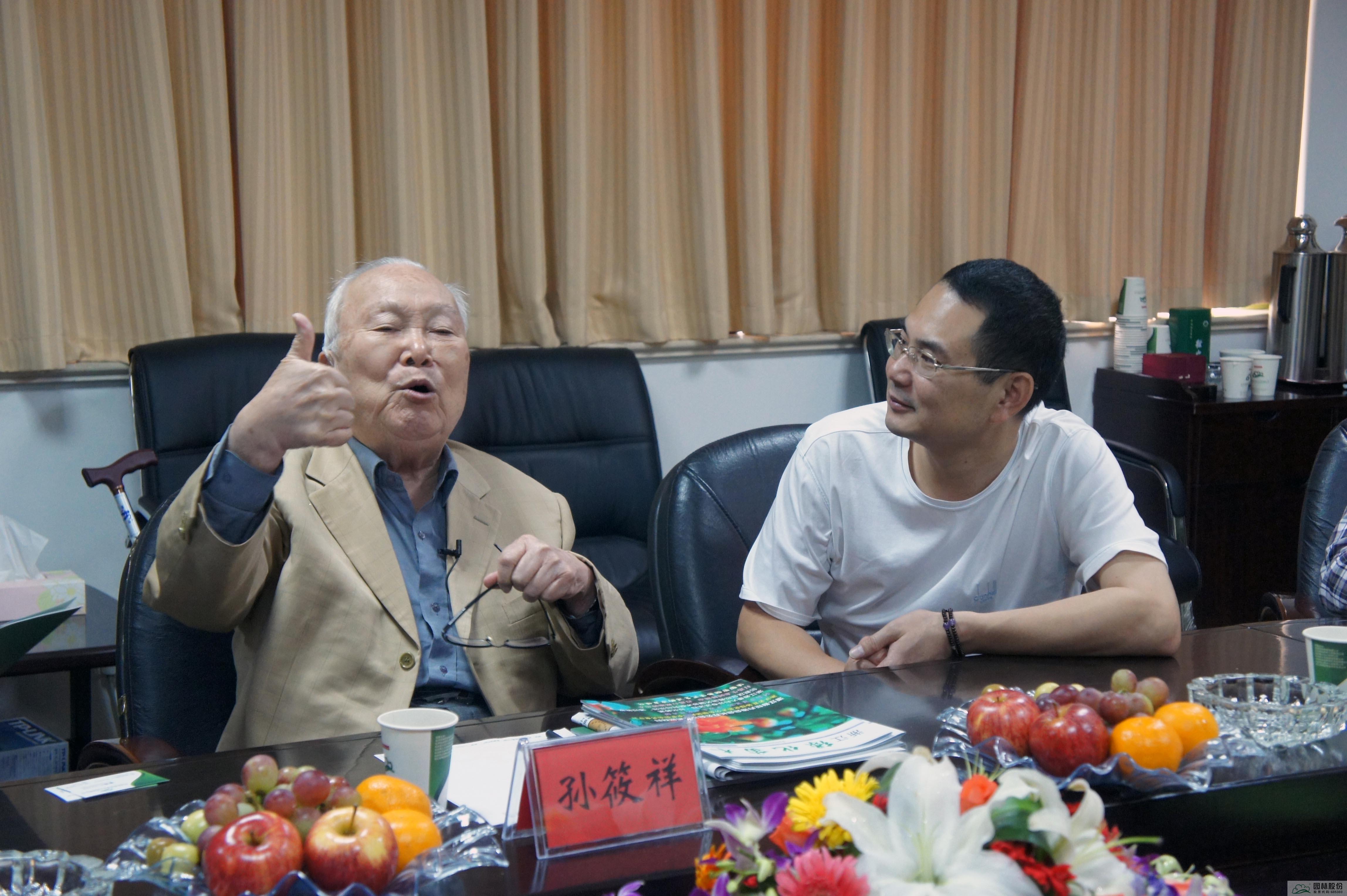 孫筱祥先生的學術(shù)思想和造園理念對風景園林行業(yè)的發(fā)展產(chǎn)生了深遠影響,作為眾多園林企業(yè)中的一員,園林股份同樣深受孫筱祥先生造園思想的影響。2011年9月,90歲高齡的孫筱祥先生攜夫人蒞臨企業(yè)總部,與董事長吳光洪等暢談造園理念,交流造園思想,對企業(yè)為中國園林事業(yè)做出的貢獻表示贊賞與肯定。