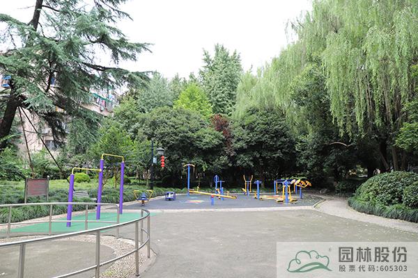 與健身塑膠場(chǎng)相鄰的活動(dòng)場(chǎng)地為水泥地,與整體風(fēng)格不協(xié)調(diào)。通過鋪設(shè)彩色塑膠,地面增加跳方格、跳遠(yuǎn)、跳房子等圖案,地上增加兒童活動(dòng)器械,形成兒童活動(dòng)場(chǎng)地。同時(shí)對(duì)四周的破損卵石園路進(jìn)行修補(bǔ),增加戶外座椅。