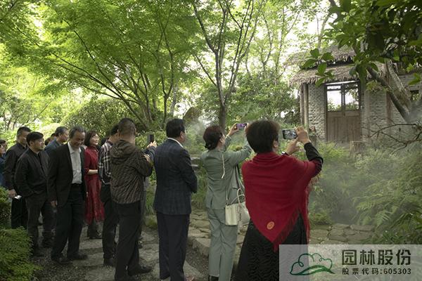 在李壽仁的帶領(lǐng)下,與會(huì)人員首先參觀了畫境·青山湖花園中心室外景觀展示區(qū)。五月的花園中心,綠意盎然,繁花綻放,鋪展開一幅生態(tài)自然、清新怡人的風(fēng)景畫卷,引來大家的不斷贊嘆,紛紛直呼“太美了!”“太漂亮了!”