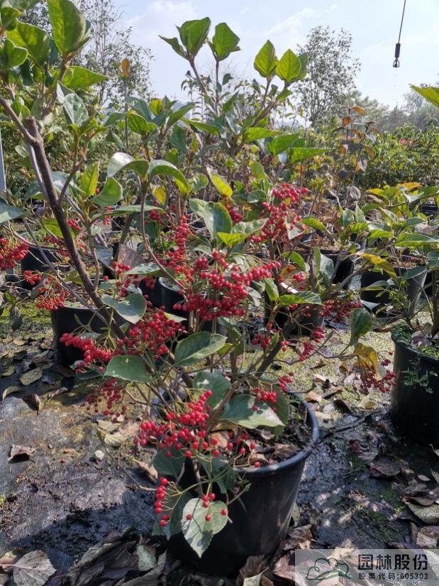 莢蒾屬植物既可觀花又可觀果,且絕大部分種類都是可以觀果的,只是被開發(fā)應(yīng)用的寥寥無幾,故仍有許多優(yōu)良的觀果種類有待開發(fā),如皺葉莢蒾的一些雜交品種及很多本土原種,像宜昌莢蒾、莢蒾、傘房莢蒾等等,均具有良好的開發(fā)潛力。后期,園林股份將繼續(xù)加大莢蒾屬植物的開發(fā)力度,力爭(zhēng)更多的莢蒾產(chǎn)品在美麗中國(guó)建設(shè)中大放異彩。