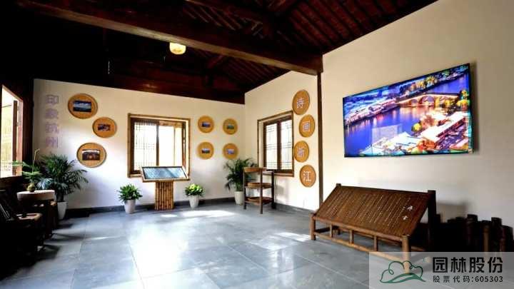 在屋內(nèi),是一個(gè)室內(nèi)展廳,它以現(xiàn)代化數(shù)字媒體手法和圖文展板來為觀眾講述來自浙江的故事。展廳內(nèi)容共有三個(gè)部分,為“印象杭州”“詩畫浙江”“美麗家園”,通過豐富的表現(xiàn)方式,展現(xiàn)了浙江發(fā)展成就,描繪了一幅鄉(xiāng)村振興的美好圖景。