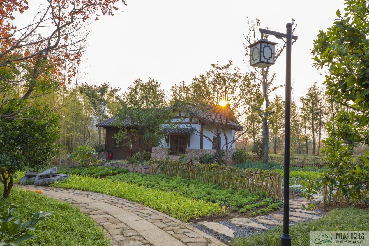 整個(gè)園區(qū)主要種植黃山欒樹、楓香、桂花等植物,植物景觀分為六個(gè)展示區(qū)。其中,翠竹園以散生竹為主,營(yíng)造翠竹掩映的效果;庭院植物以羽毛楓、桂花、紫薇等為主,在湖邊駁岸、庭院等小空間以花境組團(tuán)形式,營(yíng)造精致雅靜的植物景觀;花園植物區(qū)以康養(yǎng)植物為主,營(yíng)造清新而有益的花園空間,放松身心;茶園區(qū)以茶園的形式,展示西湖的茶園慢生活;彩葉山林植物模擬西湖常綠落葉闊葉混交林植物群落,以杭州鄉(xiāng)土植物為主,打造自然優(yōu)美、秋色迷人的風(fēng)景林;現(xiàn)代田園區(qū)以果蔬花園、田埂農(nóng)作、設(shè)施農(nóng)藝等形式展示現(xiàn)代詩(shī)意棲居的田園生活。