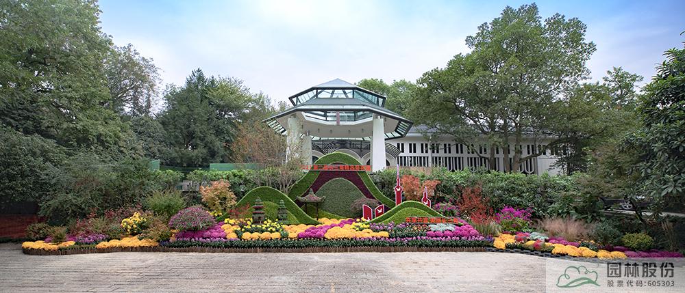 張楠帶領(lǐng)團隊打造的2021年長三角菊花精品展開幕式背景主題景觀