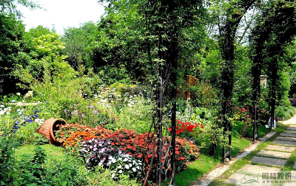 2017年,張楠主持設(shè)計與施工的“首屆中國花境競賽”參賽作品《花溪疊翠·芳滿庭》,位于臨安青山湖花園中心室外景觀展示區(qū),在現(xiàn)有庭院布局基礎(chǔ)上,外圍景觀結(jié)合木香藤架,打造林蔭、陶罐花溪、鼠尾草等景觀系列,營造百花齊放、芳菲無數(shù)滿庭院的意境;內(nèi)部則用櫸樹、景石、石籠擋墻及園路圍合成半開敞空間,以八仙花為主材、搭配鳶尾、石榴、落新婦、百子蓮等,打造3個花境組團,營造人們熱愛生活、向往美好的鄉(xiāng)村私密花園美景。歷經(jīng)數(shù)月的精心施工、養(yǎng)護與專家評比,該作品從43個參賽作品中脫穎而出,榮獲“首屆中國花境競賽金獎”。