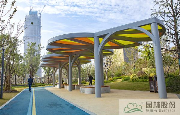 在跑道沿途,有4處可供歇息的銀杏廊庭(時光驛站),廊庭頂部設(shè)計(jì)為黃褐色的銀杏葉交錯重疊,充滿自然生趣,讓銀杏“市樹”文化擁有了更具體的功用。