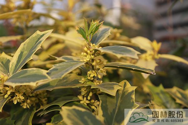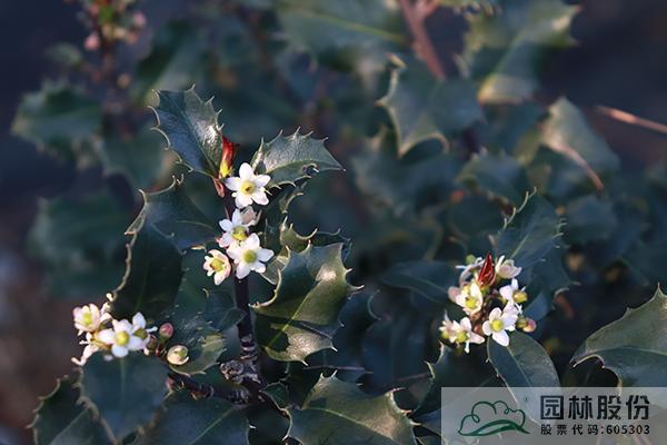 其中,彩葉冬青更是其中的佼佼者。除了果實(shí)可供觀賞外,它們還擁有黃色葉、藍(lán)綠色葉和銀邊葉等彩色葉片。葉形變異也是相當(dāng)豐富,具四角狀,橢圓形,倒卵形等多種形狀;有些品種具有刺狀葉片,而有些則是光滑的葉片;有些品種葉緣還具有波浪狀的起伏。四季景觀分明,在春季,它們的莖腋間會(huì)簇生出一朵朵清新可愛的小花;而在當(dāng)年生的枝條上,則會(huì)抽出亮麗的嫩葉。到了秋季,隨著氣溫的驟降,葉色會(huì)變得更加地明艷;冬季的時(shí)候,在雌性的植株枝條上,則會(huì)掛滿累累的果實(shí)。這些不同的形態(tài)和色彩變化,使得彩葉冬青在不同的時(shí)間和空間中呈現(xiàn)出不同的姿態(tài)、色彩與意境,從而提升了冬青品種的觀賞價(jià)值,成為園林景觀中重要的觀葉植物。