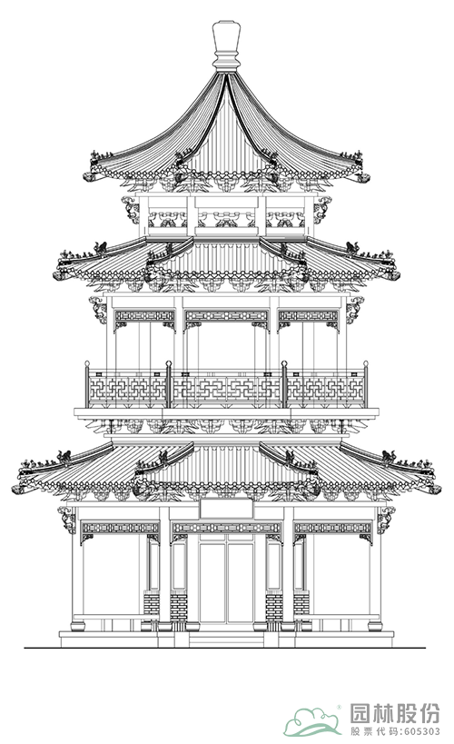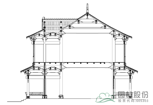 3.尺度比例:依據(jù)明清工程做法確定主體構(gòu)架、屋頂結(jié)構(gòu)、維護(hù)結(jié)構(gòu)、臺基地面和裝飾構(gòu)件五部分的樣式、比例、材料選擇等,使建筑與周圍的景觀相協(xié)調(diào)。