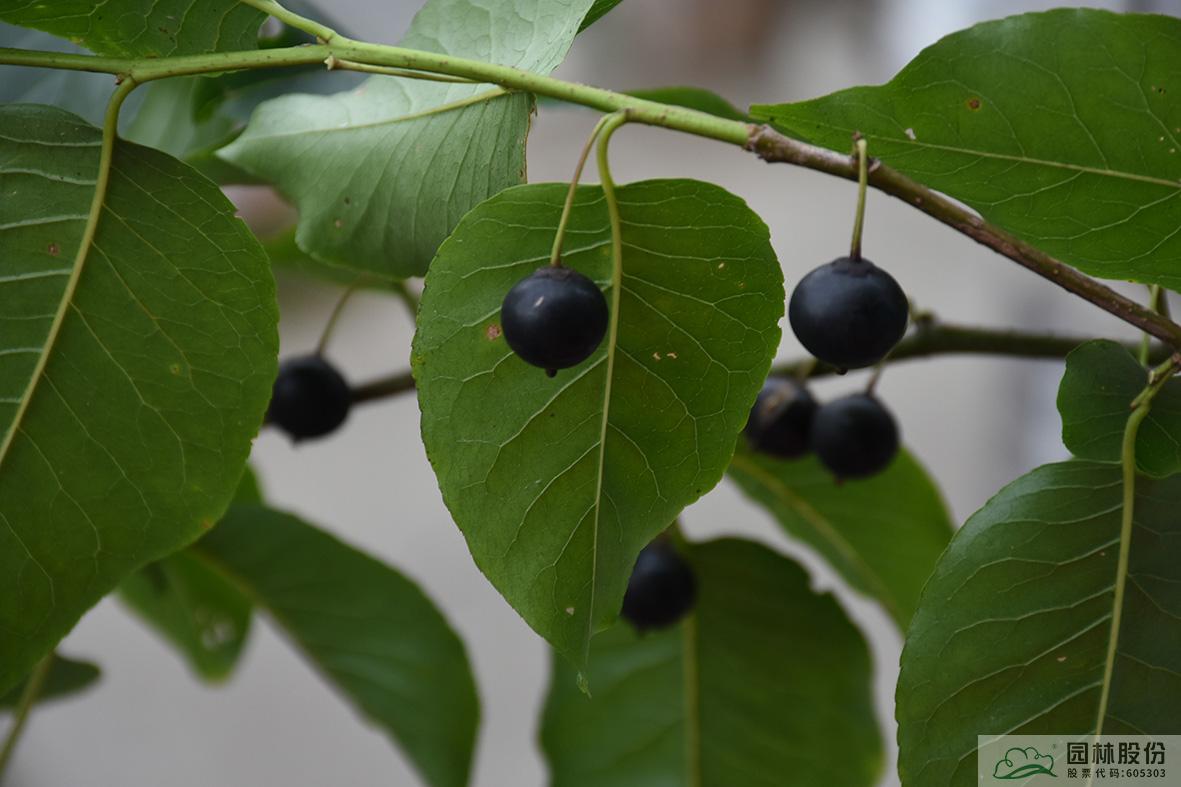大果冬青:落葉喬木,樹體高大,分枝點(diǎn)高。葉片紙質(zhì)至堅(jiān)紙質(zhì),卵形或卵狀橢圓形?;ò咨揖叩南銡?。果成熟時(shí)黑色,球形。四季景觀分明,隨時(shí)間和空間變化呈現(xiàn)不同的姿態(tài),色彩和意境,常在園林景觀中孤植。