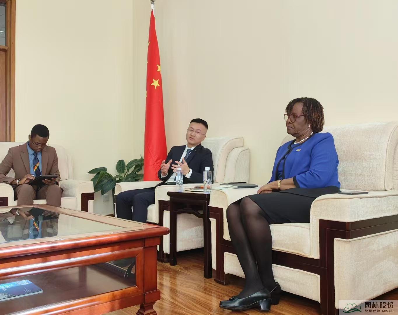 陳振華與津巴布韋駐華大使阿比蓋爾·紹尼瓦(Abigail Shoniwa)進行了會談。陳振華介紹了園區(qū)的發(fā)展情況以及在進出口貿易方面的優(yōu)勢,并表示希望與津巴布韋推進雙邊貿易、投資、文化等領域開展深入合作。