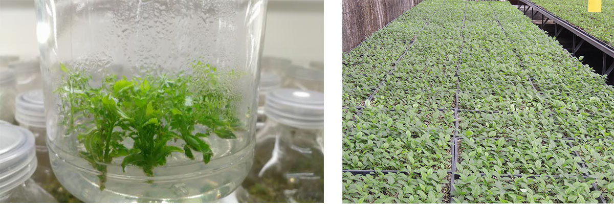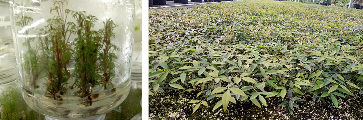 研發(fā)中心擁有1200㎡組培研發(fā)及生產(chǎn)車間,年產(chǎn)組培種苗500萬(wàn)株。經(jīng)過(guò)多年的研發(fā),建立了南天竹屬、冬青屬、礬根屬、紫金牛屬、繡球?qū)佟褜俚榷喾N植物組培快繁技術(shù)體系,在木本植物組培快繁技術(shù)方面處于國(guó)內(nèi)領(lǐng)先水平。