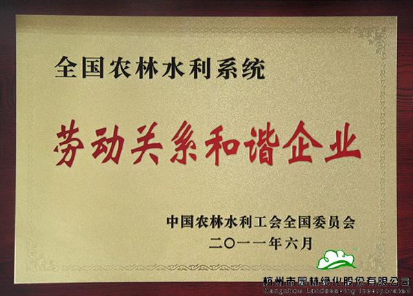 全國農(nóng)林水利系統(tǒng) 勞動關系和諧企業(yè)