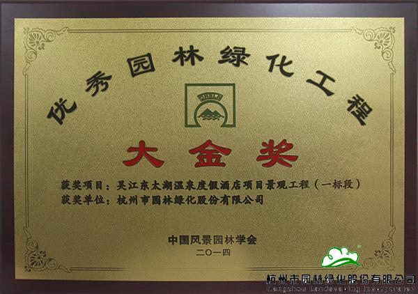 “中國風景園林學會‘優(yōu)秀園林綠化工程’大金獎”